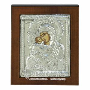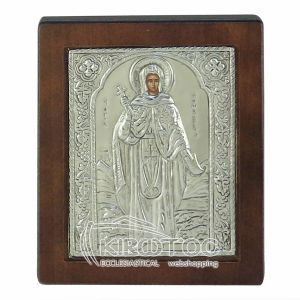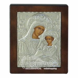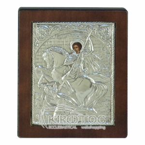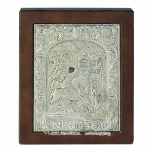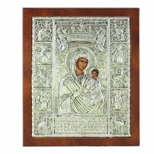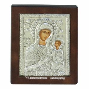 ΧαρακτηριστικάΜεταλλική εικόνα επενδυμένη με φιλμ ασημιού, ακριβές αντίγραφο βυζαντινής τέχνης με σφραγισμένης ποιότητας πιστοποιημένο ασήμι σε πλαίσιο ξύλινης λάκας με βυζαντινή μεταξοτυπία. Αμετάβλητη στο χρόνο προσδίδει αύξουσα αξία στο προιόν, λόγω ειδικής επεξεργασίας.