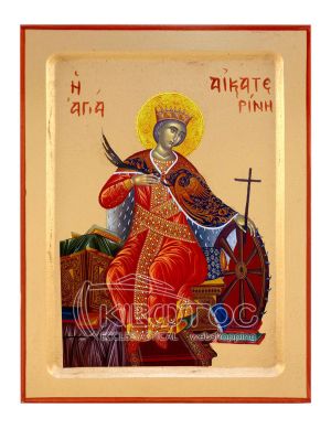 Εκκλησιαστική εικόνα Αγία Αικατερίνη σε λιθογραφία, φιλοτεχνημένη σε φυσικό ξύλο λεύκας. Η εικόνα είναι επίπεδη με λαξευμένα σημεία στο χέρι τα οποία δημιουργούν στο φόντο εικαστική παλαίωση. Έχει υποστεί ειδική επεξεργασία και βερνίκωση για να έχει την μέγιστη αντοχή στον χρόνο και στις φθορές.