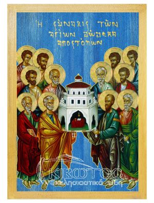 Εκκλησιαστική εικόνα Άγιοι Απόστολοι φιλοτεχνημένη στα πρότυπα της Βυζαντινής τεχνοτροπίας. Η εικόνα είναι ξύλινη, επίπεδη σε κλασικό εκκλησιαστικό σχέδιο με παραδοσιακό κόκκινο περίγραμμα καδμίου. Είναι ο πιο κλασικός τύπος εικόνας λόγω του διαχρονικού της σχεδιασμού. Η χρήση MDF ξύλου την καθιστά αμετάβλητη στο πέρασμα του χρόνου, καθώς το υλικό του είναι μεγάλης ανθεκτικότητας. Είναι ειδικά επεξεργασμένη και βερνικωμένη για να έχει την μέγιστη αντοχή στον χρόνο και τις φθορές.