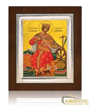 Εικόνα Άγιος Αθανάσιος σε Μεταξοτυπία με Ασημένιο Περίγραμμα 27x22cm