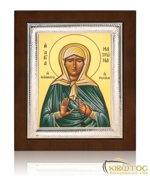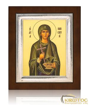 Η αναπαράσταση του Αγίου Αθανασίου είναι Μεταξοτυπία σε Καμβά από Φύλλα Χρυσού. Κατασκευάζεται με περίγραμμα είτε σε καθαρό Ασήμι 925° βαθμών είτε σε Επάργυρο (λεπτή στρώση ασημιού στην επιφάνεια) από έμπειρους Έλληνες τεχνίτες. Η κορνίζα της είναι σε γλυκιά καφέ απόχρωση και παράγεται σε διάσταση 27x22cm.