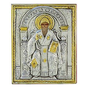 Ξύλινη εικόνα Άγιος Σπυρίδων σε χρυσοκονδυλιά. Η τεχνοτροπία της χρυσοκονδυλιάς δίνει στην εικόνα ανάγλυφη υφή και μοναδικά χρώματα.